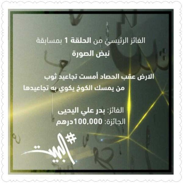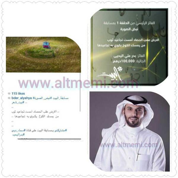 وذلك بمناسبة الفوز وحصوله على المركز الاول في مسابقة قناة سماء دبي الفضائية ( البيت ) ومبلغ ( 100,000 ) الف درهم , ماشاء الله .