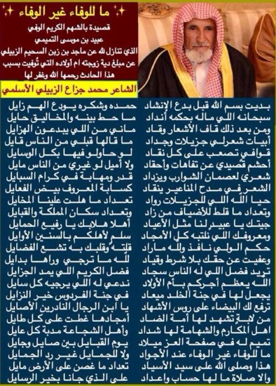 ابيات مدح في ابن الشيخ / عبيد بن موسى التميمي .