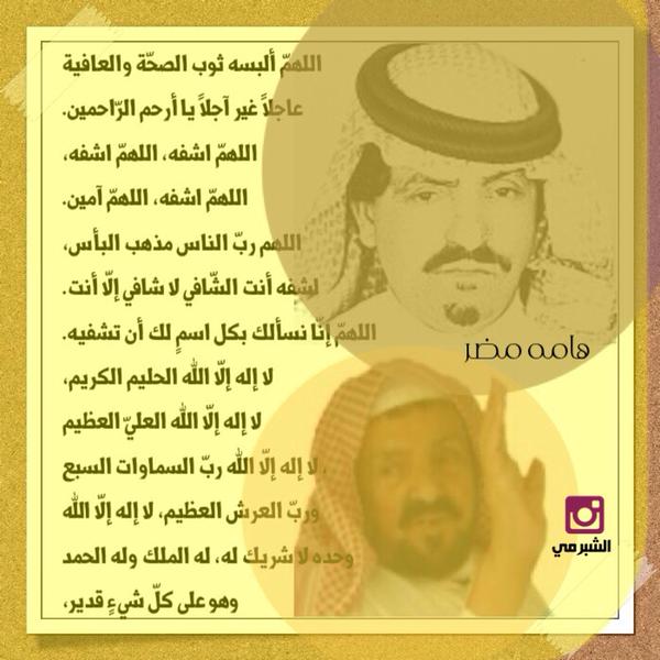 وذلك بعد ان ادخل المستشفي على اثر وعكة صحية ولازال يرقد في مستشفي الحمادي بالرياض .