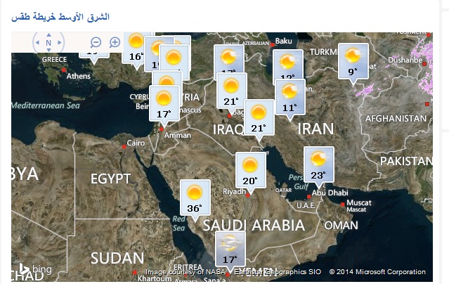 حالة الطقس بالشرق الاوسط يوم الثلاثاء 18 ربيع ثاني
